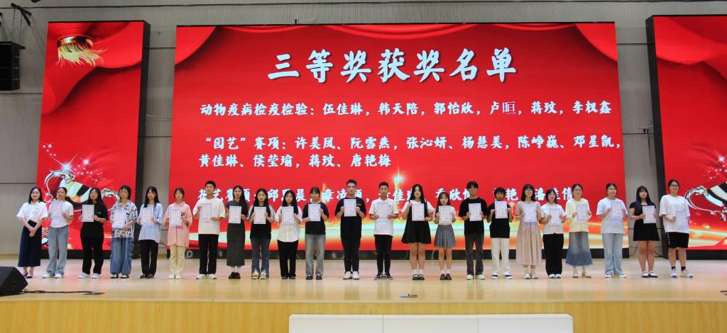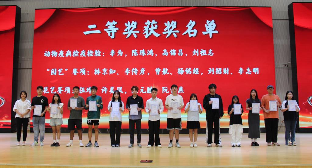 接着开始了激动人心的颁奖仪式,由出席颁奖仪式的园林系老师们为动物疫病检疫捡验、“园艺”赛项、花艺赛项获奖选手颁奖。