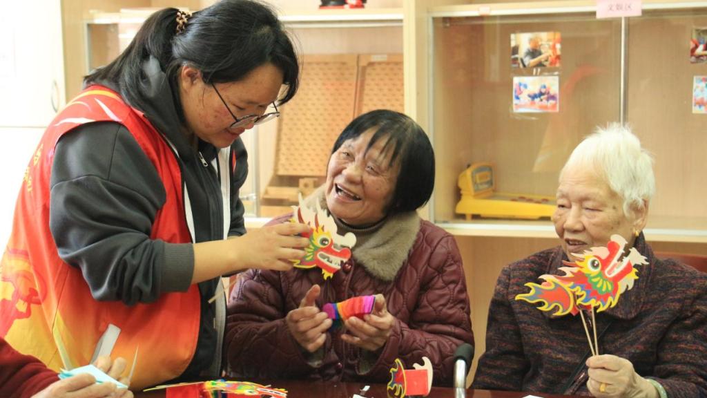 活动伊始,志愿者们便与老人们亲切交谈,认真倾听他们的心声。随后,志愿者们分发制作工具,并详细讲解制作步骤。在志愿者耐心指导下,老人们尽情发挥想象力,通过剪、折、贴等动作,一步步完成手工制作。现场欢声笑语,温情满满。岁月在老人们脸上刻下了深深浅浅的皱纹,但在慰问过程中,志愿者们仿佛看到了爷爷奶奶们年轻时的模样,内心泛起阵阵涟漪。