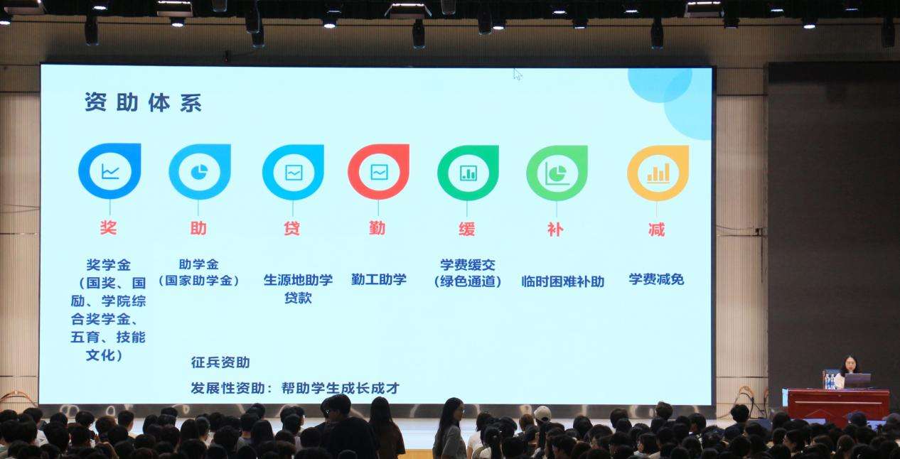 讲座中,曹婧老师对国家及学校资助政策体系进行了详尽解读,涵盖国家奖学金、国家励志奖学金、国家助学金、生源地贷款、勤工助学及学费减免等多项关键举措。她着重强调,申请各类资助需严格秉持诚信原则,主动接受民主监督;同时,还介绍了学校的固定与非固定勤工岗位资源,鼓励家庭经济困难学生积极利用这些机会,缓解经济压力,专注学业发展。