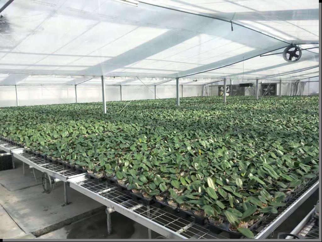 图1:标准玻璃温室 图2、温室内蝴蝶兰苗