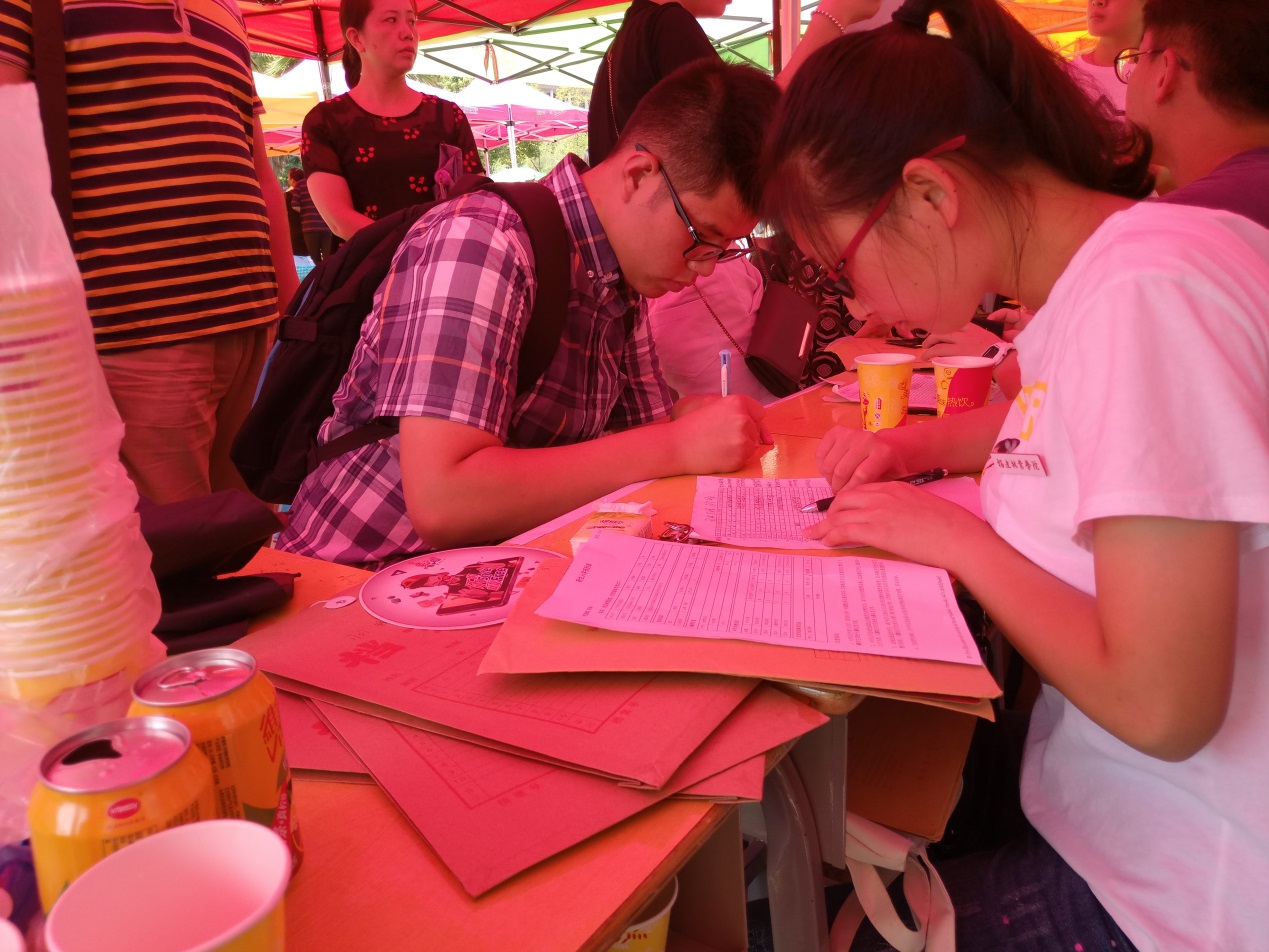 2017年9月6日上午七点半,新生接待组和学籍注册组的成员完成签到工作后就开始着手新生报到的准备工作。车站接待组和现场咨询组也按时就位开始工作。每个新生到达系驻点后,首先将报到材料交给本班助导,再由志愿者带领去缴费注册,完成后再由志愿者带领去宿舍安顿。尽管志愿者们头顶烈日、手提行囊,但面对新生的不安和疑惑,仍然积极、热情地为他们答疑解惑。为了让新生尽快地熟悉新环境、融入集体生活,志愿者沿途向新生简单介绍了学校的分布情况,传授自己的生活经验,解决宿舍问题,为新生的学习、生活提出了切身的建议。来来回回的接送工作和滚滚的热浪使志愿者们都露出了疲惫的姿态。但即使早已汗流浃背,他们却并没有因此而懈怠,仍然以饱满的热情和耐心迎接每一位新生。同时,志愿者们之间的紧密协调和配合再一次让我们感受到了团结力量的强大,也为刚踏入大学校园的新生送去了闷热天气中的一抹清凉。