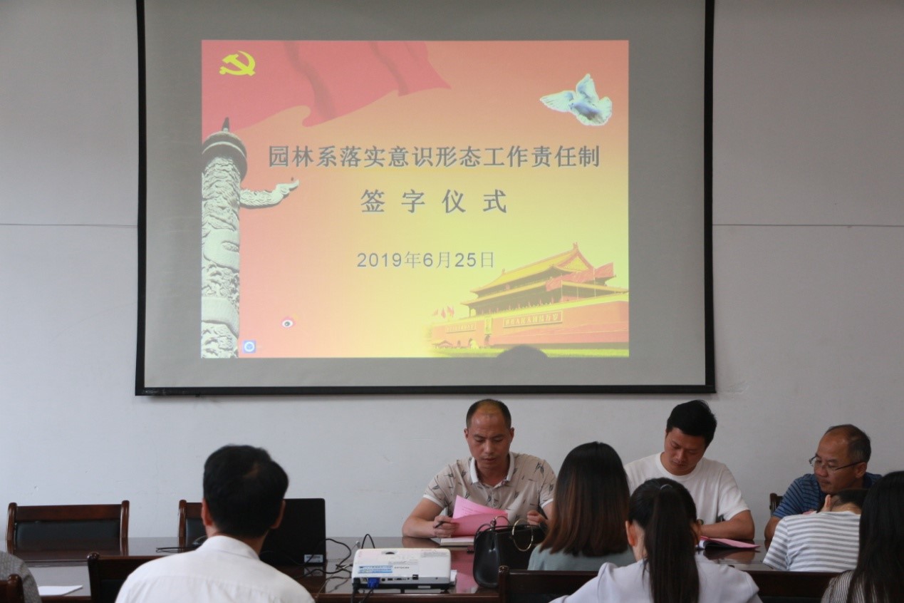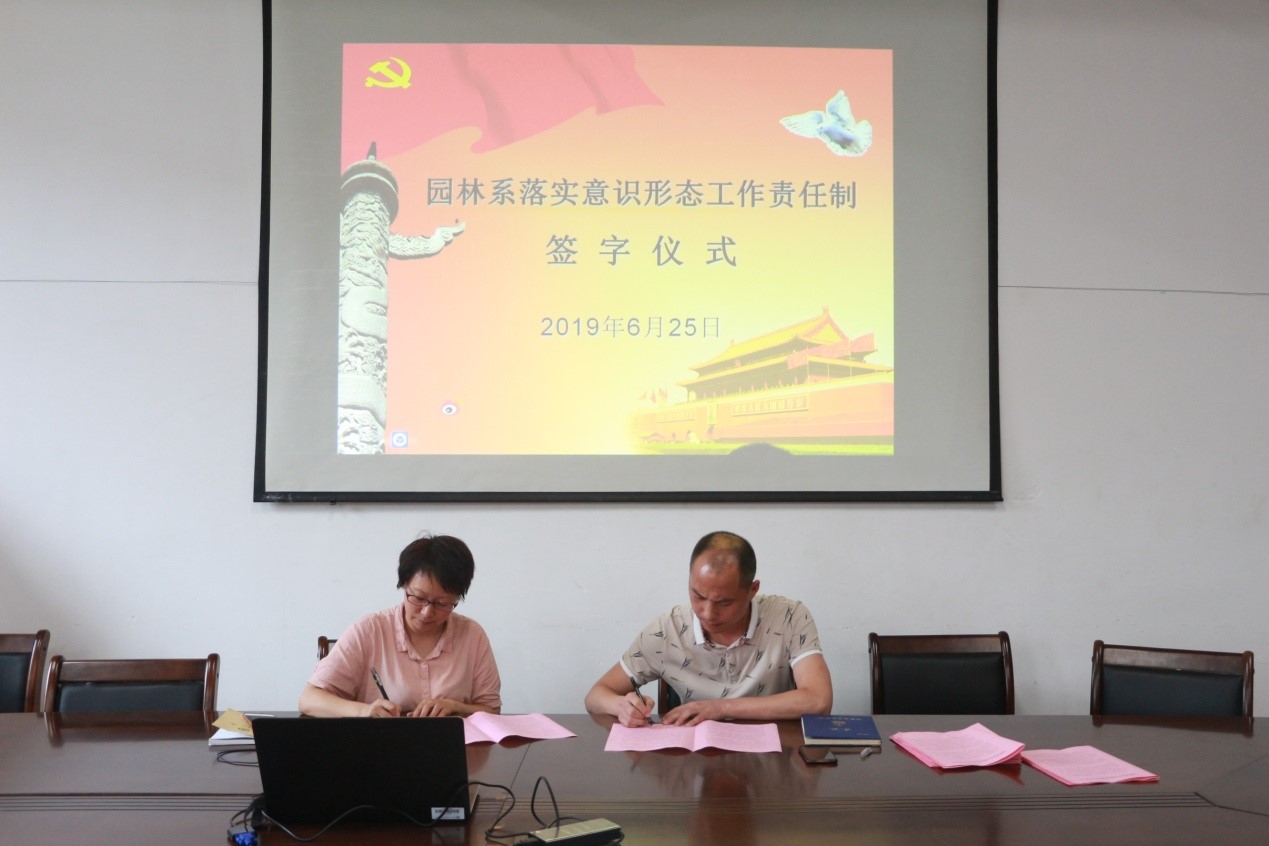 篮球欧洲杯下注_欧洲杯投注网站下载-官网:6月25日下午,园林系于系会议室举行落实意识形态工作责任制签字仪式。签字仪式由园林系党总支副书记陈剑勇主持。园林系全体专兼职教师参加了签字仪式。