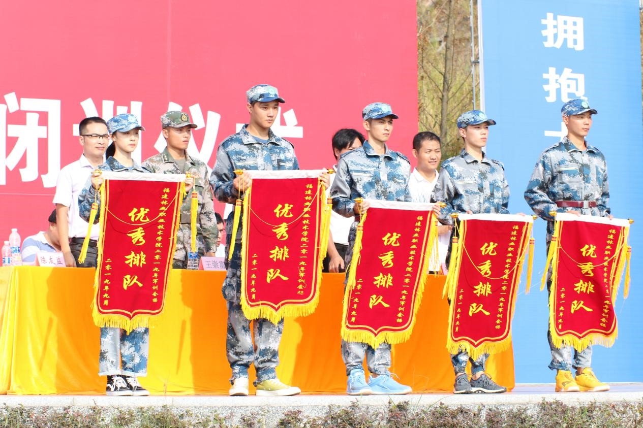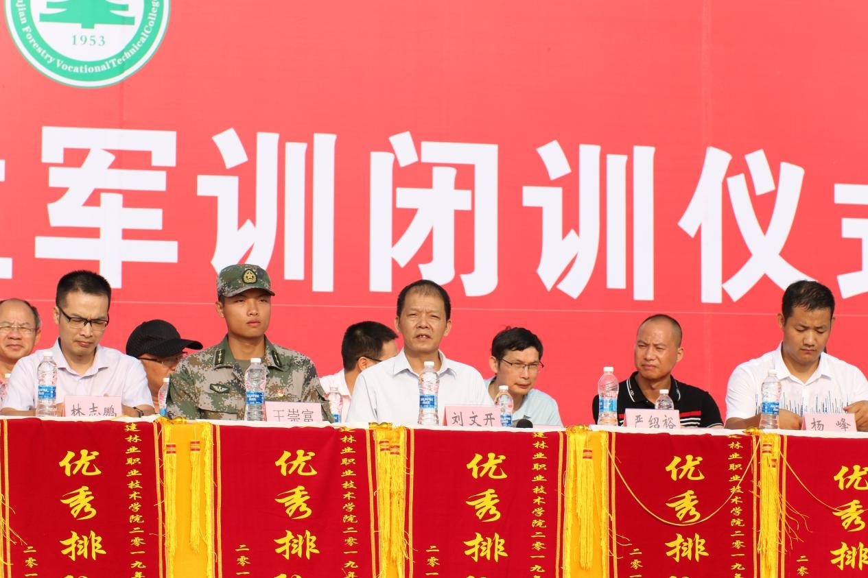 2019级新生军训闭训仪式有六项议程,第一项议程是向大家隆重介绍参加仪式的领导老师,园林系主任黄华明、园林系党总支副书记陈剑勇到场参加;第二项议程是进行军训会操表演;第三项议程是为优秀教官、优秀排队、优秀学员进行颁奖;第四项议程是由学员代表交通工程系工程造价1904班陈艺欣同学讲话;第五项议程是由教官代表交通工程系工程造价1804班的余凡教官讲话;第六项议程是由学院党委副书记、院长刘文开讲话,他表示,经过大家的共同努力,学院2019级新生军训活动顺利完成了各项既定任务,取得了圆满成功,教官与军训新生不畏烈日、不怕苦、不怕累、刻苦训练,保质保量地完成了军训任务,向大家表示热烈的祝贺!