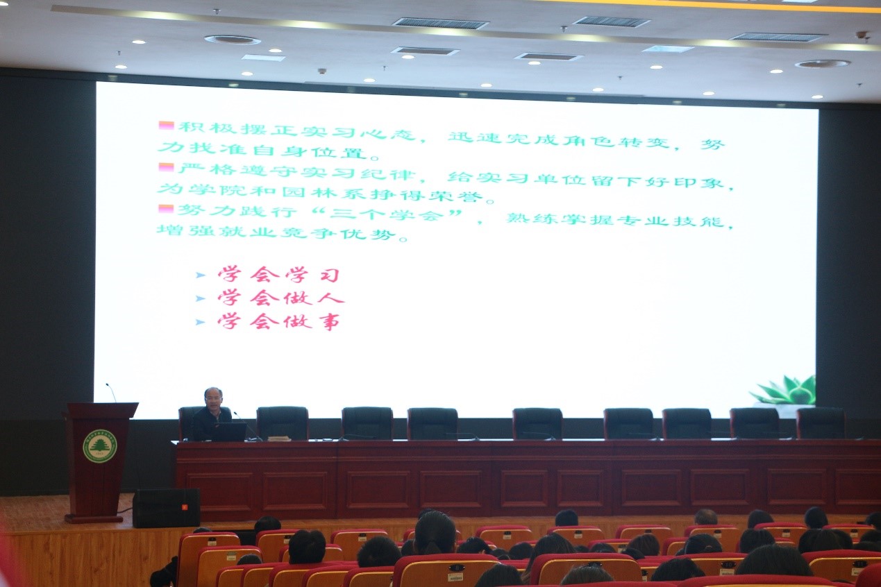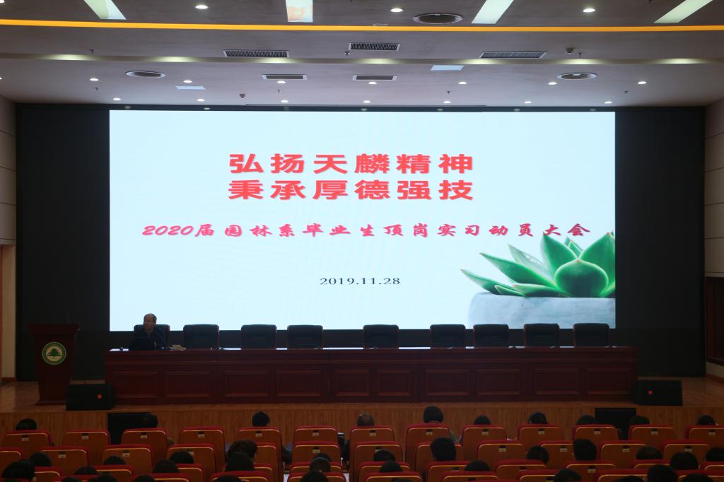 篮球欧洲杯下注_欧洲杯投注网站下载-官网:11月28日下午16:10,园林系于图书馆学术报告厅召开2020届毕业生顶岗实习动员会。园林系主任黄华明副教授、园林系党总支副书记陈剑勇老师、园林系教学管理科科长陈剑峰、园林系全体专兼职教师与2020届毕业生参加本次会议。会议由园林系主任黄华明老师主持。