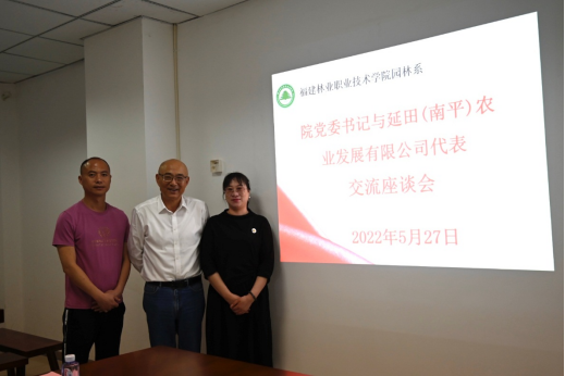 南平市星吉龙农业有限公司应总经理和延田农业陈经理谈到发展农业是践行人与社会和谐共生,实现经济效益、社会效益、环境效益的有效途径。希望学院加强学生劳动精神教育,培育德智体美劳全面发展的人才。