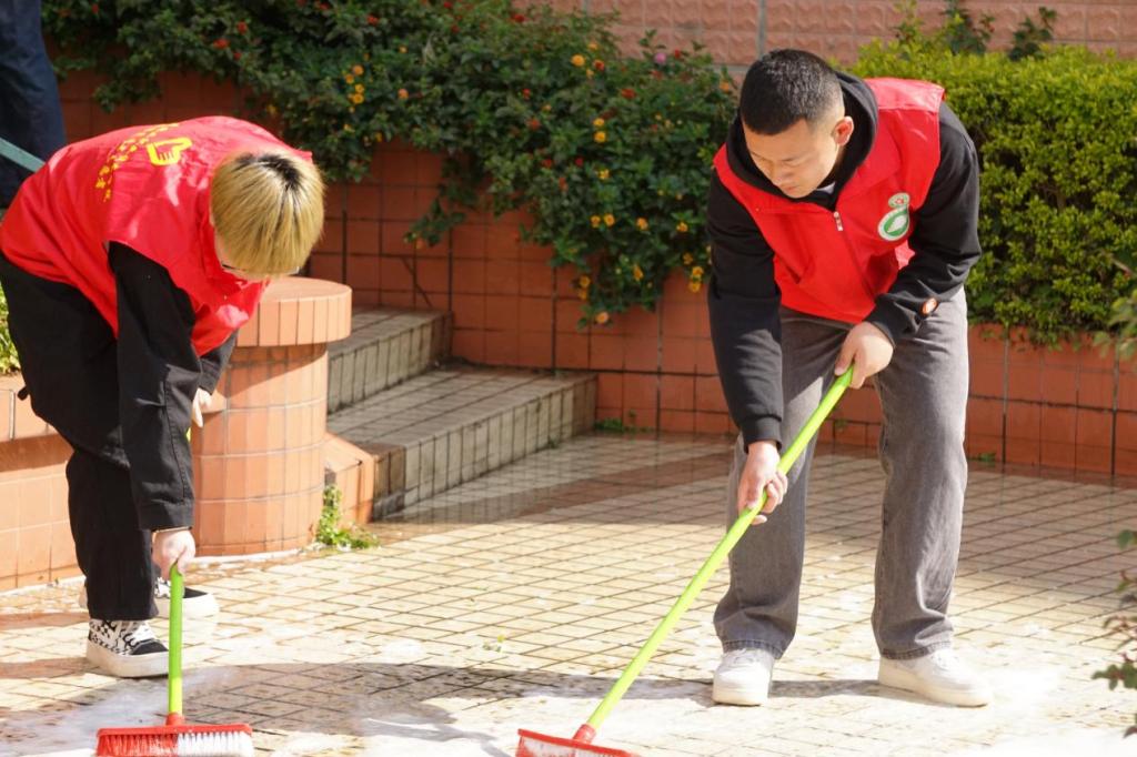 在暖阳的照耀下,志愿者们分工合作。他们对小区公共区域各角落的杂物、垃圾等进行清理,并对小区主干道和绿化带里的垃圾纸屑进行清扫。在大家的共同努力下,社区环境整洁干净、焕然一新。