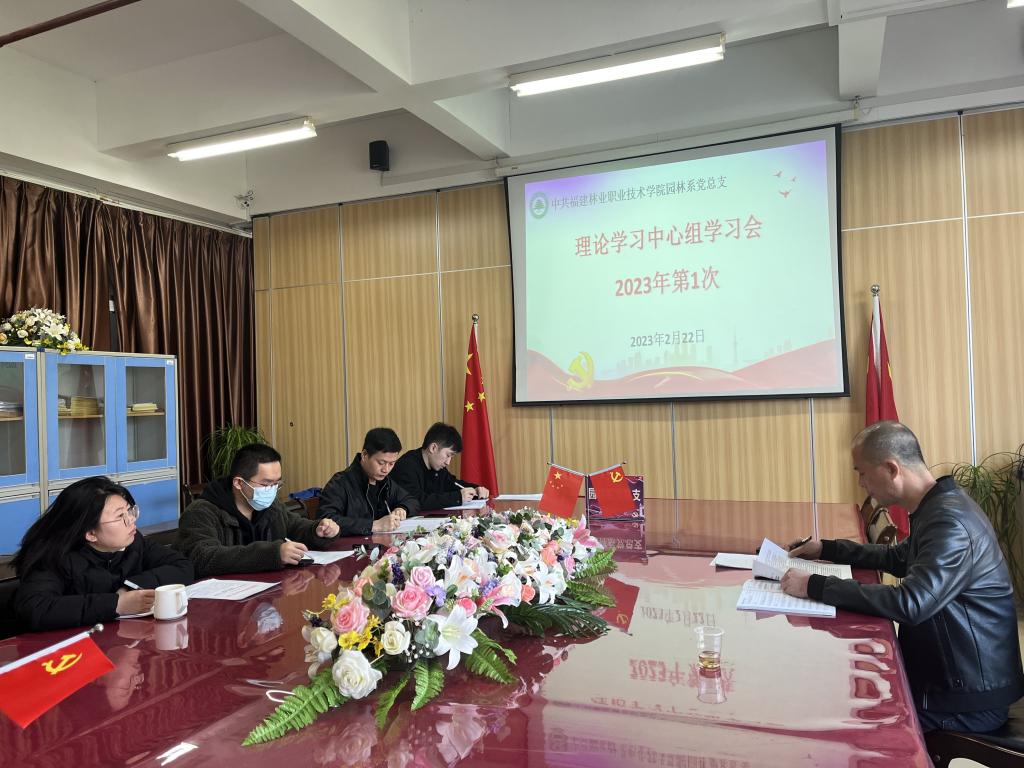 2023年2月22日上午,园林系党总支召开2023年第1次理论学习中心组学习会,此次学习会由园林系党总支理论学习中心组成员参加,学生党支部书记列席,系党总支书记陈剑勇领学。