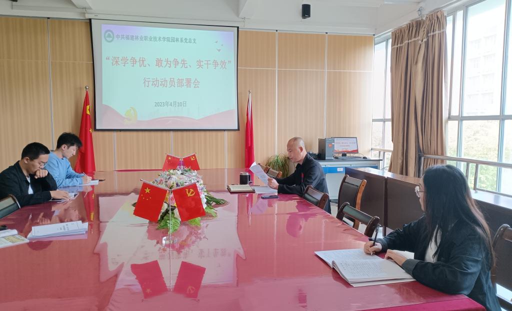 为贯彻落实党的二十大精神和省委“深学争优、敢为争先、实干争效”行动部署,4月10日上午,园林系党总支组织召开行动动员部署会。此次会议由园林系党总支书记陈剑勇主持,园林系领导班子及学生第一党支部书记倪海奔和学生第二党支部书记刘延君共同参与。
