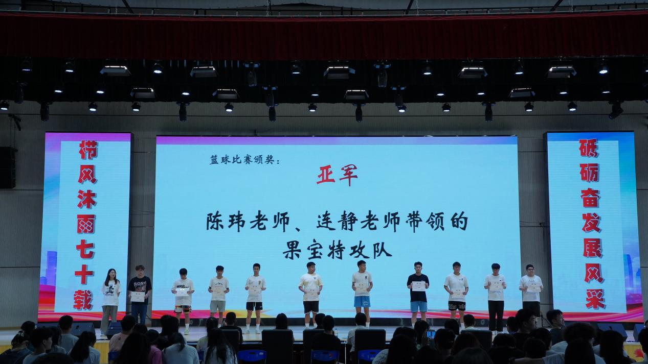 第二项议程进行颁奖仪式,由出席颁奖仪式的系领导、辅导员为此次体育节赛项获奖选手颁奖,奖项共分为六人七足、拔河、跳大绳、羽毛球(男双、女双、混双)、乒乓球(男双、女双、混双)、篮球六项团体赛项以及五子棋和象棋的个人赛。