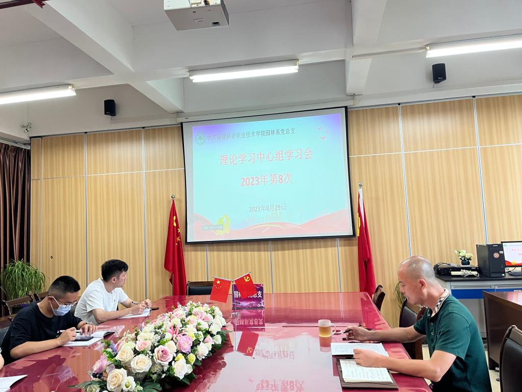 2023年8月29日上午,园林系党总支召开2023年第8次理论学习中心组学习会,此次学习会由园林系党总支理论学习中心组成员参加,学生党支部书记列席,系党总支书记陈剑勇领学。