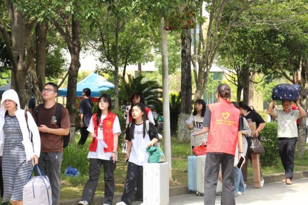 晨曦初露,在延平站,车站接站组的志愿者高举学院指示牌迎接新生和家长,指引新生坐上迎新专车,安全到达学校;在校门口,接待引导组的志愿者热情引导新生有序到达学校指定地点办理入学手续;在园林系注册点,学籍注册组的志愿者积极协助老师,共同查验新生证件、登记信息、完成电子注册,现场工作流畅、高效;在园林系大本营,各班助导积极协同新生辅导员为同学们办理报到手续、收集新生入学所需材料、温馨提示新生入学注意事项;在林职院的各个角落里,从踏入校门到进去寝室,后勤保障组的志愿者总能及时出现在新生和家长的身边,他们顶着烈日骄阳一趟一趟地帮助新生搬运行李,用耐心的态度和热情的讲解为远道而来的学子提供“一站式”暖心服务。