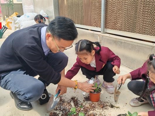 伊始,韩旭老师在园林楼中式景观园中为小朋友们科普了中式风格的园林小品及景观元素,拓宽了小朋友们对中式园林景观的认知。随后,戴曲顺老师为小朋友们介绍了生态景观教育科普基地的花卉产业生产基地,科普了基地内一些有趣的植物品种。最后,在戴老师的代领下,小朋友们纷纷亲自实践种植了小盆栽,不仅充分调动了小朋友们的兴趣,还让小朋友们对生态景观有了一定的认知。