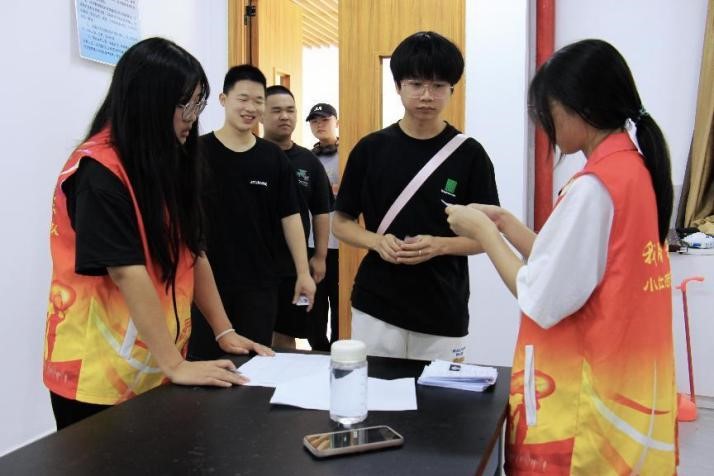 在考试正式开始前,严格的检录工作有序进行。志愿者认真核对每一位考生的身份信息,确保考试的公平性和准确性。