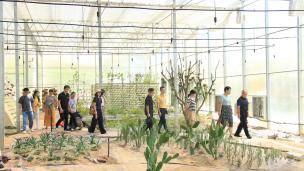 调研座谈会结束后,一行人跟随黄华明主任的步伐,移步至园林系生态景观科普基地。从中式园林景观到智能化大棚,由花卉生产基地到东南亚风情园林和现代化无土栽培实训基地,不同的园林风格,展现了多元化的美学体验,更体现园林系对于园林艺术的多样化发展,全方位提升。