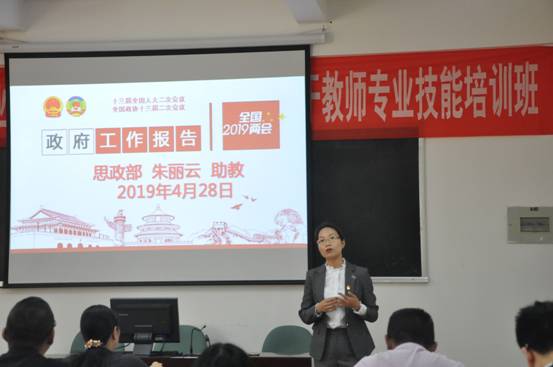 为深入学习政府工作报告,领会两会精神,篮球欧洲杯下注_欧洲杯投注网站下载-官网:4月28日下午,艺术设计系特邀思政部朱丽云老师在综合楼705开展学习政府工作报告专题讲座。参加此次专题讲座的有罗立仪副院长、系党总支书记成榕、系副主任曾秀云、党政办主任杨自绍、艺术系全体党员教师。