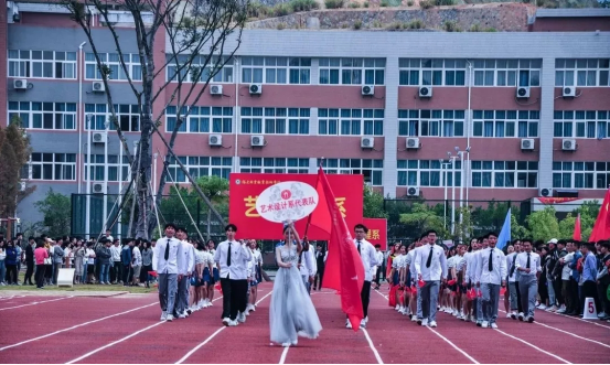 随后,艺术设计系全体新生以响亮、自信的声音高喊我系的运动会宣言:多彩艺术,绘我中华,凌云赛场,斗志昂扬。整齐的步伐,踏出他们的坚定,灿烂的笑容,写满他们的热情。他们朝气磅礴,彰显着自信与昂扬;他们英姿飒爽,展示着年轻的风采与活力。
