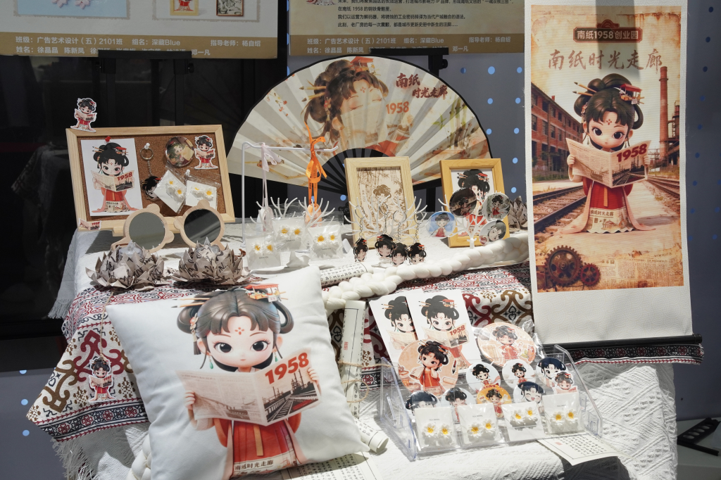 走进艺术传媒系打造的“兿·林空间”,工业记忆与青春创意正在这里激情碰撞。广告艺术设计专业的毕业生们用作品讲述他们与这座城市的故事,每一件作品都是对南纸历史的全新诠释,也是对未来的美好想象。