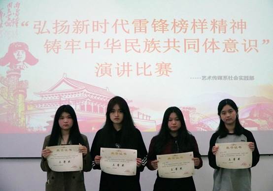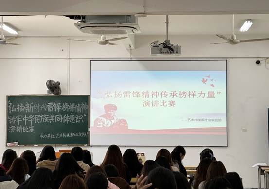 为引导同学们做中华民族传统美德的传承者、社会主义道德规范的实践者、良好社会风尚的创造者,3月19日下午,艺术传媒系于江南校区教学楼405开展以“弘扬新时代雷锋榜样精神,铸牢中华民族共同体意识”为主题的演讲比赛。