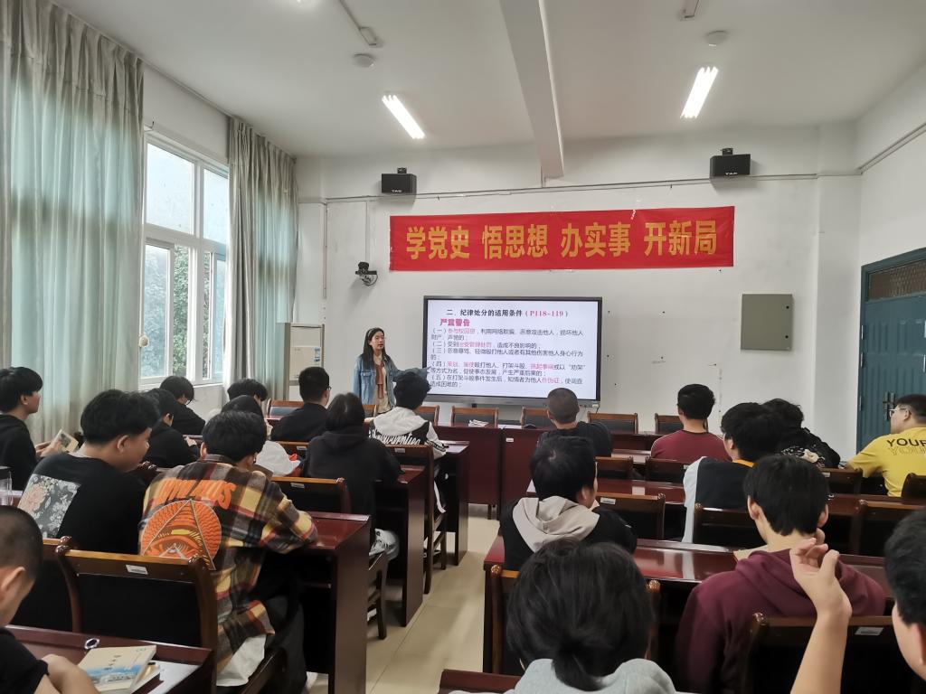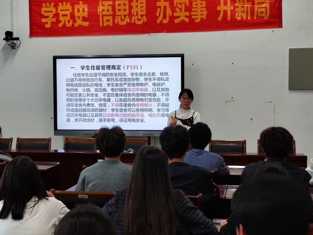 班会伊始,各辅导员从学生手册入手,结合学生违纪实例,重点针对课堂纪律、考试作弊处理、疫情防控下学生行为准则、宿舍管理规定等内容进行阐述讲解,向同学们强调了校规校纪的重要性,教育引导学生自觉抵制各种不良行为和风气,树立正确的世界观、人生观和价值观,并从疫情防控角度切入,为全体同学介绍学校疫情防控政策,告诫同学们要严格遵守学校的规章制度,服从学校管理,筑牢安全稳定防线。同时,辅导员们要求班干部们要充分发挥模范带头作用,讲究团结,严格要求自我,做遵守校纪校规、守法的模范。最后,各班辅导员对班会内容进行总结寄语,要求同学们以文明、整洁、规范、守纪为目标,深化自我约束意识,用积极奋进的心态开拓人生新征程。