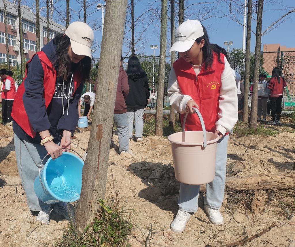 此次植树劳动实践活动,以浇水护“杉”为载体,既增强了青年学生党员的环保意识,美化了校园环境,又让每位参与其中的师生党员真正成为共建绿水青山的有心人、保护人。“植”此青绿,春满人间,信工学子美好的青春与未来也在这盎然的绿意中徐徐展开。