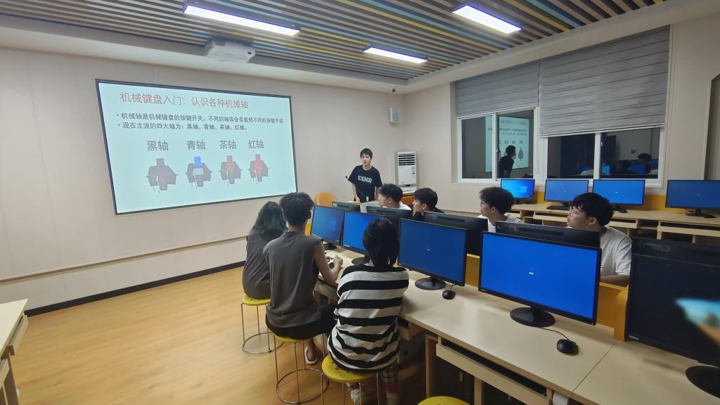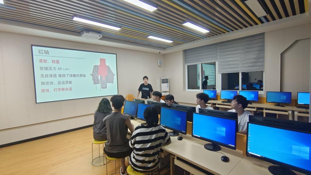 计算机协会于5月11日在实训三403开展了本学期计算机协会社团指导活动,本期指导内容先后围绕机械键盘的成色,材质,机械轴,键帽技术等进行。机械键盘每个按键都由独立的开关(又称“轴”)控制闭合,按键音量大,灵敏度高,适于游戏、办公等场景。根据“轴”的种类划分为黑轴机械键盘、红轴机械键盘、青轴机械键盘、茶轴机械以及白轴机械键盘五类机械键盘,促使本系同学进一步提高对机械键盘的了解,为同学普及机械键盘知识。