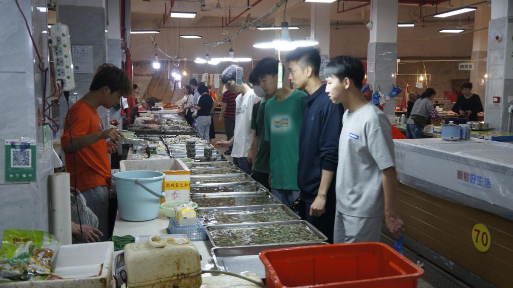 厨艺大赛开始前,同学们便早早的来到市场采购本次大赛所需食材和调味料,一边体验生活,一边互相分享一些挑菜的技巧、砍价的方式,并总结出了一系列买菜的小常识与小妙招。食材的顺利采购为即将到来的厨艺大赛做充分的准备,为本次活动的圆满举办打下基础。