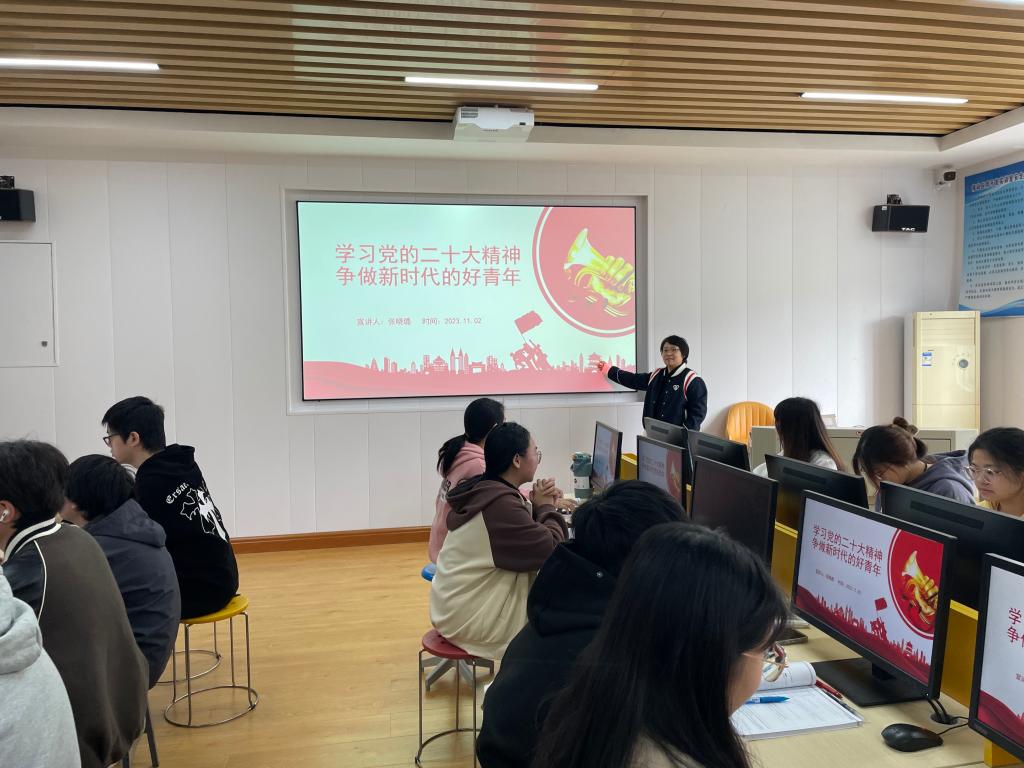 为深入学习贯彻党的二十大精神,引导青年学子筑牢精神之基,厚植爱国情怀,矢志不渝跟党走,2023年11月2日14:30,信息工程系教工党支部书记张昨璐老师对党的二十大精神作宣讲,软件技术2201班全体同学参加了本次党课。