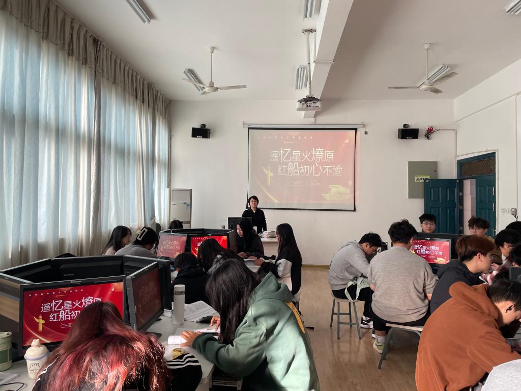 2023年11月7日下午,信息工程系教工党支部书记张晓璐老师为云计算2301班全体学生讲授主题为“遥忆星火燎原 红船初心不渝”的党课。