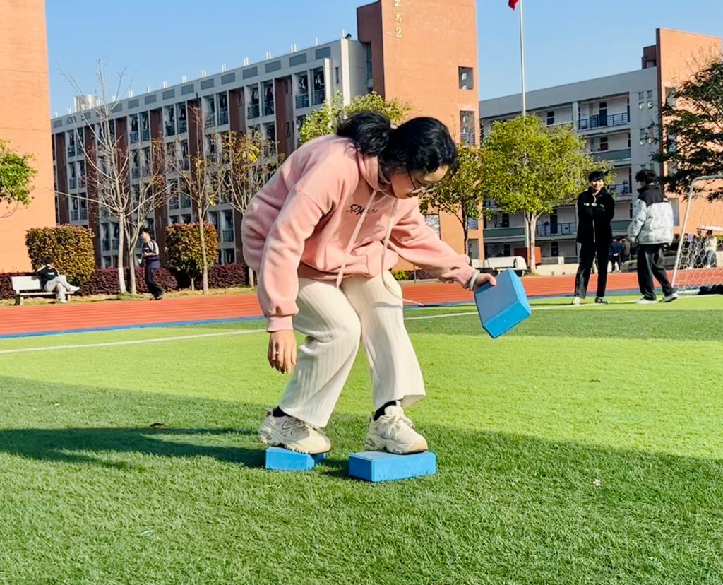 “三砖交替?足不沾地”项目充满了趣味性与挑战性。参赛选手们需要利用三块砖头交替前行,双脚不能直接接触地面,这不仅考验了选手们的平衡能力,更需要他们具备清晰的策略规划。比赛过程中,选手们小心翼翼地移动砖头,一步一个脚印,现场气氛紧张又欢乐。有的选手在前进过程中险些失误,但凭借着敏捷的反应迅速调整,赢得了观众们的阵阵掌声。