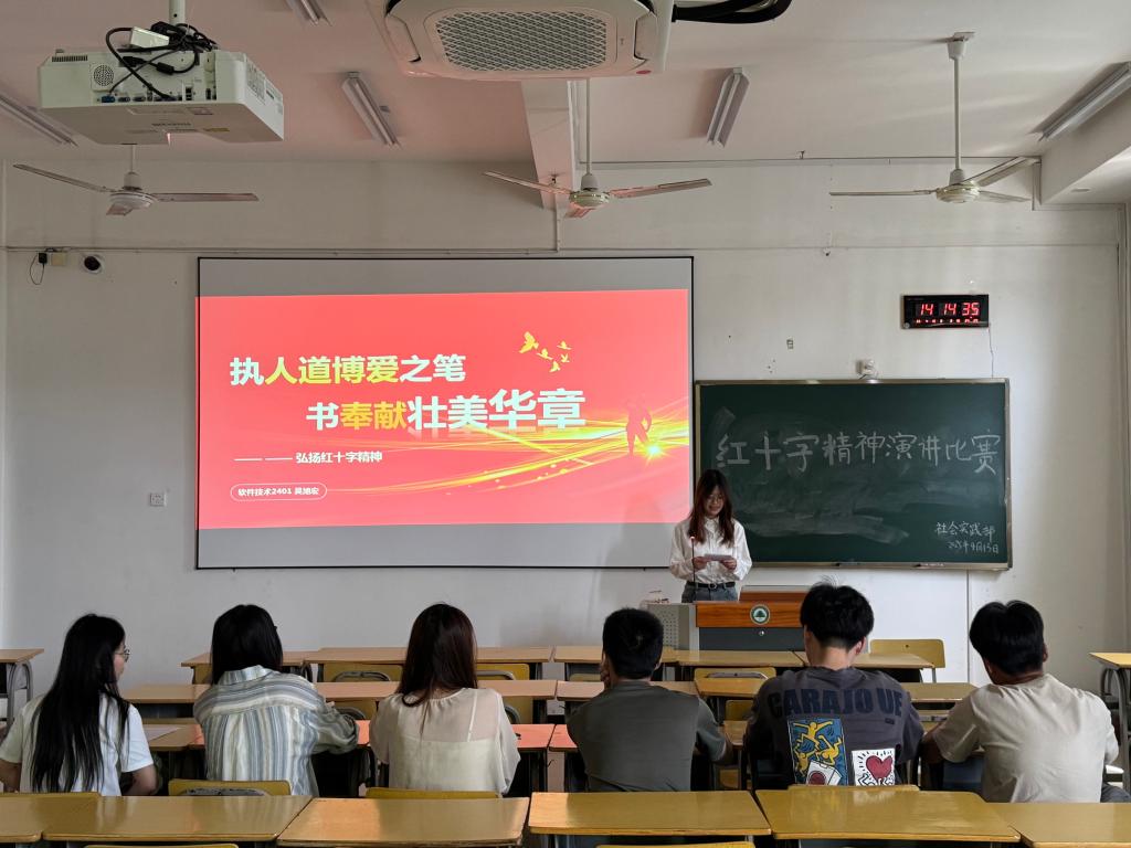 为弘扬 “人道、博爱、奉献” 的红十字精神,推动 “三救三献”、禁毒防艾、生命教育等理念在青年学生中的传播,4 月 13 日下午 14 时,信息工程系社会实践部在教学楼举办 “人道博爱为笔,绘就奉献长卷” 主题演讲比赛。活动聚焦红十字先进人物事迹与两岸交流合作视域下的红十字运动,吸引了各班级学生踊跃参与。