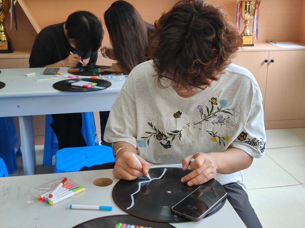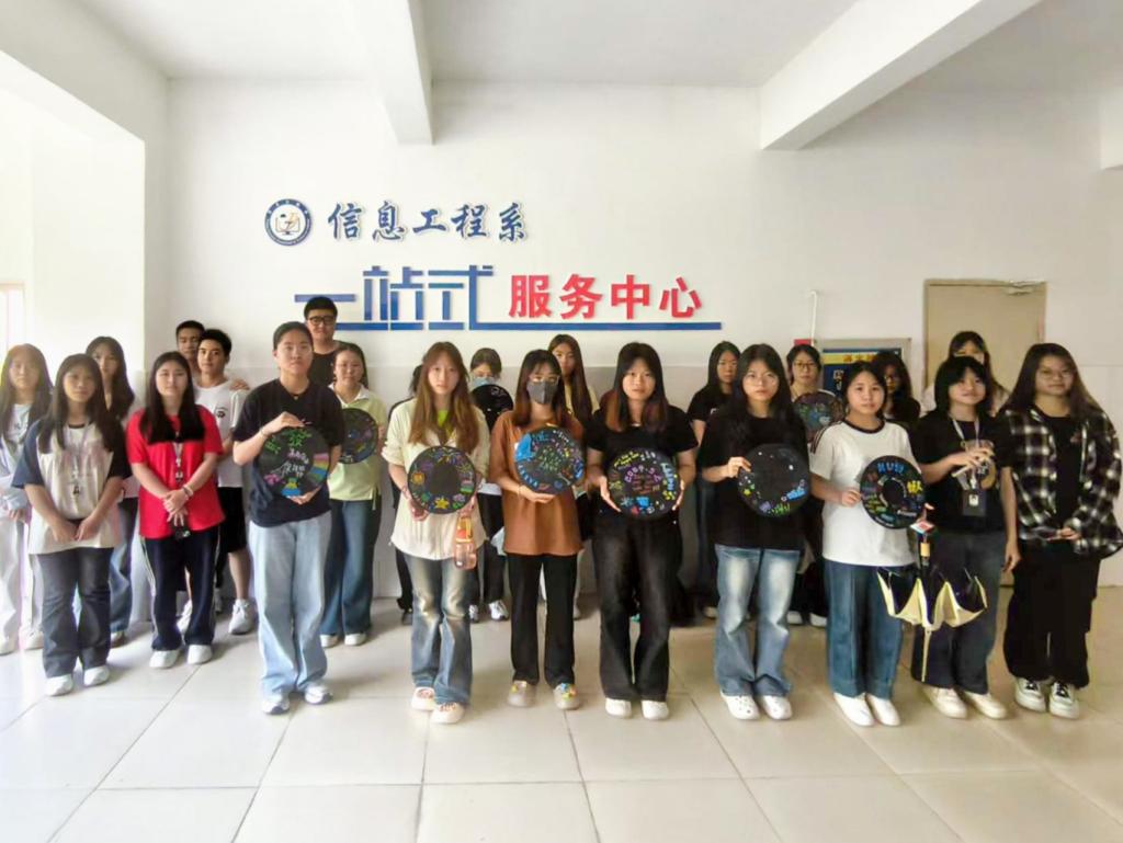 2025年4月29日下午15时,信息工程系在五号楼“一站式”学生社区三楼成功举办 “黑胶焕彩,创意发声” 黑胶唱片 DIY 创意活动。作为 “五育融合” 系列活动的创新实践,本次活动以“音乐与绘画”跨界融合为特色,吸引了全系数名师生参与,通过亲手绘制黑胶唱片,探索艺术表达与个性创意的无限可能,为校园美育注入新活力。