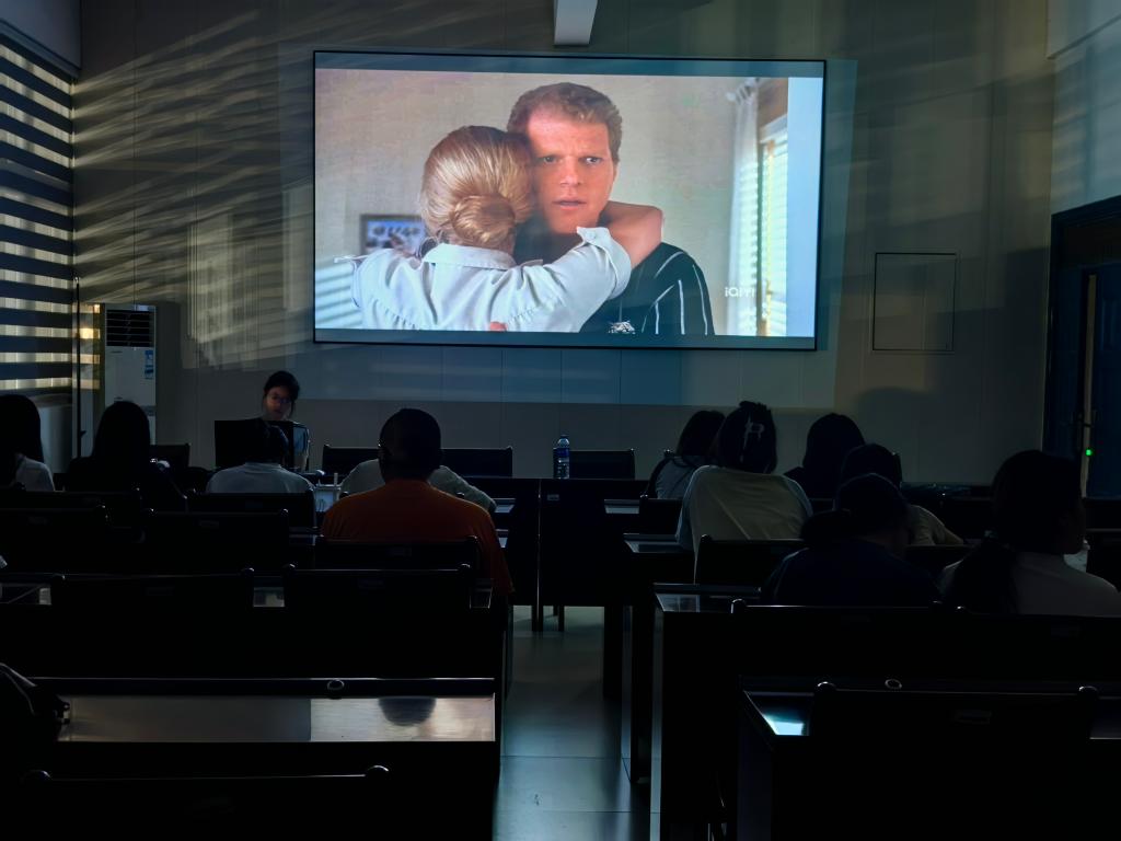 活动现场,同学们怀着期待的心情走进观影教室,随着电影序幕缓缓拉开,即刻沉浸于楚门的 “虚拟人生”。影片中,主角楚门从出生起便生活在导演精心打造的巨型摄影棚里,他的一举一动都被 24小时直播,而他却对此浑然不觉。随着剧情推进,楚门逐渐发现生活中的种种异常,便开始踏上寻找真实世界的冒险之旅。跌宕起伏的情节、细腻深刻的情感表达,让同学们沉浸其中。当楚门最终划破 “天空穹顶”,那句“假如再碰不到你,祝你早、午、晚都安”的经典台词,引发全场热烈掌声,成为刺破信息茧房的精神象征。