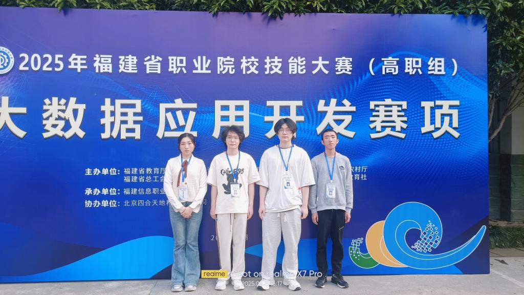 4月12日,由福建省教育厅主办的2025年福建省职业院校技能大赛(高职组)“大数据应用开发”赛项在福建信息职业技术学院成功举办。我系教师陈小芳指导的代表队(向安茗、陆广程、李明颖),与来自全省27所高职院校的队伍同场竞技,经过6小时的激烈角逐,凭借扎实的专业功底和默契的团队协作,最终在比赛中脱颖而出,斩获“大数据应用开发”赛项一等奖!