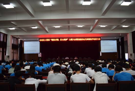 2018年5月17日中午12点30分,自动化工程系组织技能活动月参赛选手召开“精益求精,匠心筑梦”主题大会暨技能活动月参赛选手动员大会。会议由系党总支副书记、学工组组长范有福老师主持,系党总支书记、主任谢金生老师,系教学秘书、办公室主任黄立靖老师,各赛项指导老师和参赛选手代表参加会议。