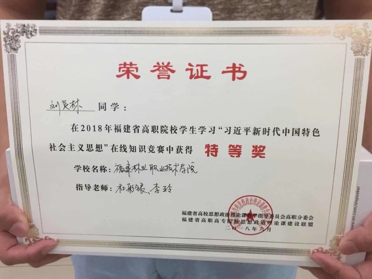 为全面贯彻落实党的十九大精神,实现习近平新时代中国特色社会主义思想“进教材、进课堂、进头脑”工作,激发大学生学习习近平新时代中国特色社会主义思想的热情,提高大学生马克思主义理论水平,我系软件专业1701班刘炎林同学积极参加福建省高职高专院校大学生学习习近平新时代中国特色社会主义思想在线知识现场竞赛,并在比赛中荣获“特等奖”。