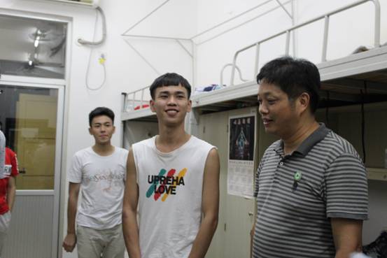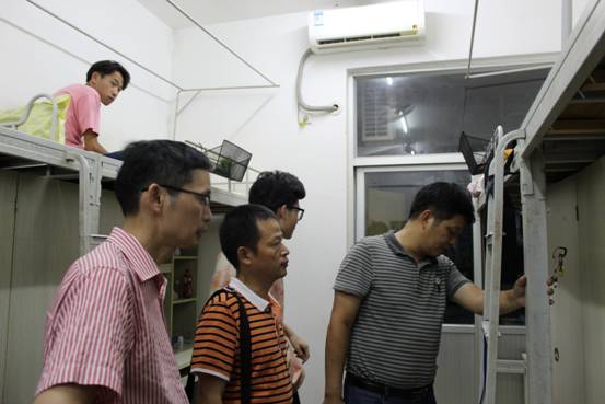 随后,迎新工作暂告一段落。5、6日晚间院党委副书记陈洪尧、自动化工程系党总支书记谢金生、办公室主任黄立靖带领着辅导员教师等人走访新生宿舍。
