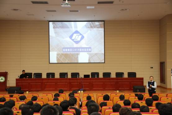 宣讲会伊始,现场气氛良好,秩序井然。三家公司依次上台播放公司的宣传视频作为开场,三位招聘负责人通过ppt演讲,向毕业生介绍了公司概况、发展历程、晋升通道、配套福利等情况,让毕业生们对三家公司有了更全面的了解,使他们在投递简历时多了一份理性,少了一份盲目。其中福耀玻璃招聘代表曾美金以最近超高人气的选秀综艺节目《偶像练习生》和《创造101》为例子,表明好的平台至关重要,品牌力量牵动世界。奥弗微科信息科技有限公司陈代表说,公司加班是常态,所以要求员工能吃苦,并在后期还会安排考核。最后出场的厦门建霖工业有限公司始创于1976年台湾,董事长吕理镇的理念是公司想要发展就要多走多跑,所以给公司取了一个英文名字“RUNNER”。三位公司负责人精彩宣讲迎来全场掌声雷动。