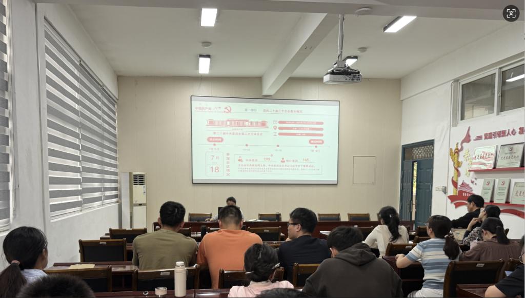 为深入学习贯彻落实党的二十届三中全会精神,11月12日下午,在信工楼408会议室,信息工程系教工党支部副书记余慧婷老师为全体教工党员讲授题为“学习贯彻党的二十届三中全会精神”的专题党课。