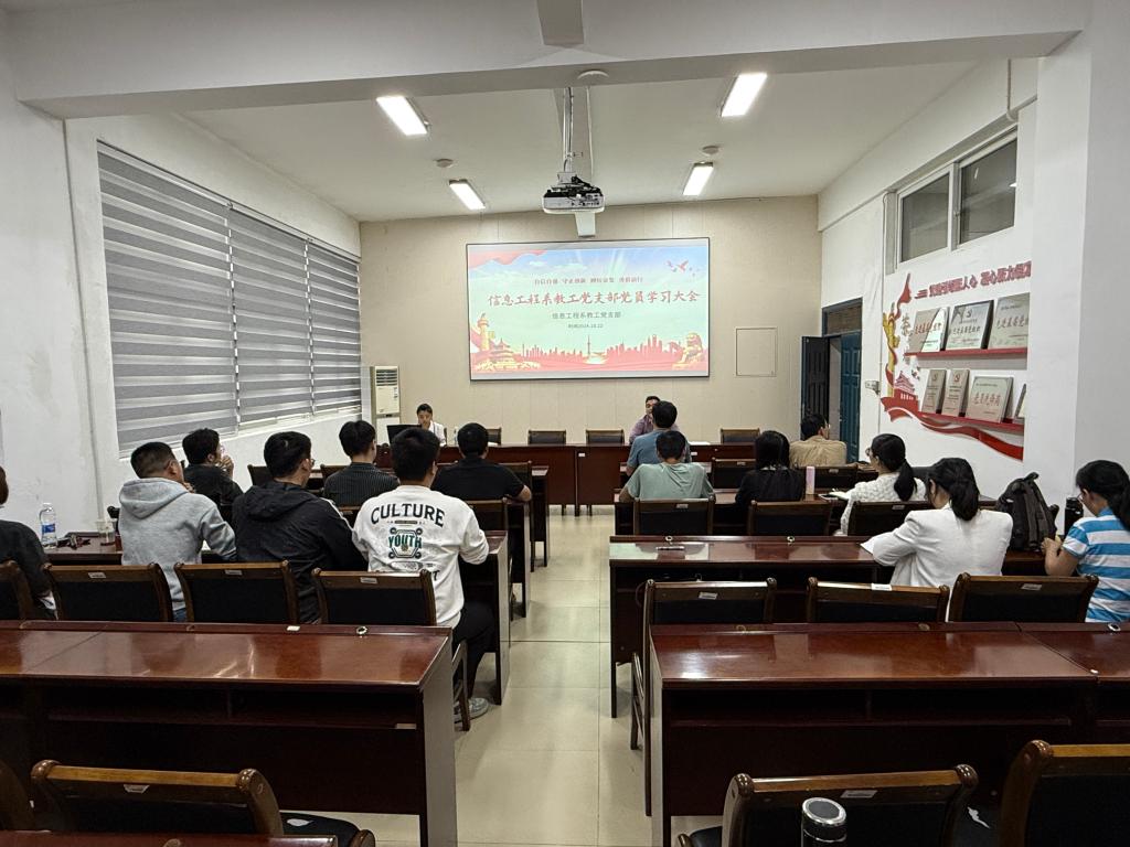 10月22日下午,我系教工党支部在信工楼408会议室召开了党员学习大会。此次大会旨在深入学习党的最新理论成果,进一步提升党员的政治素养和理论水平。