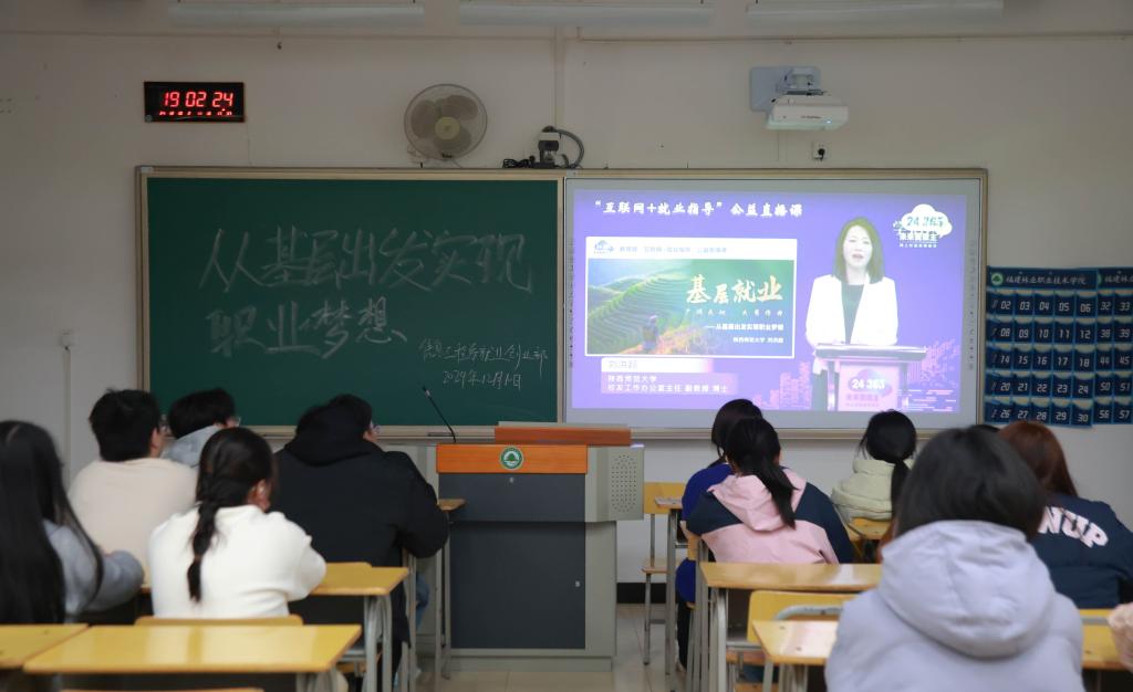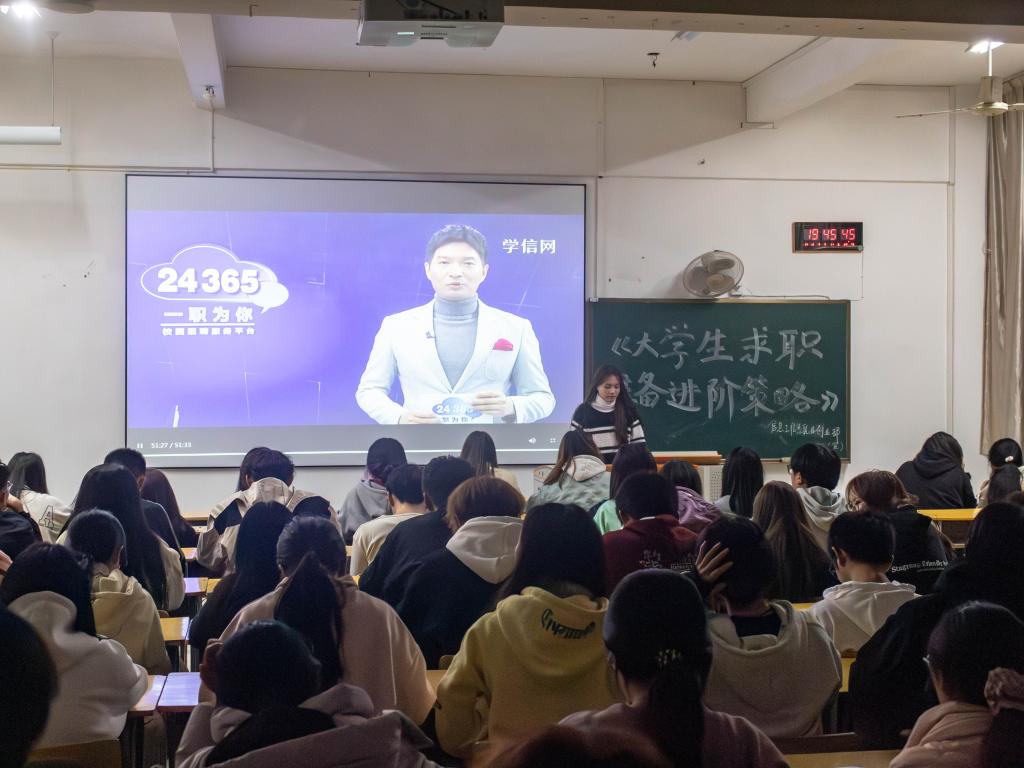 随着就业市场的竞争日益激烈,大学生面临着前所未有的职业规划挑战,每一位有志之士都怀揣着职业梦想,渴望在职场上大展宏图。因此,在当今这个充满挑战与机遇的时代,大学生的职业生涯规划显得尤为重要。为了帮助学生们更好地认识自我、了解就业市场,明确学业和职业目标,提升就业竞争力,信息工程系团总支分别组织学生于2024年12月6日19:00和12月10日19:00在教学楼观看《大学生求职准备进阶策略》和《从基层出发实现职业梦想》直播课。