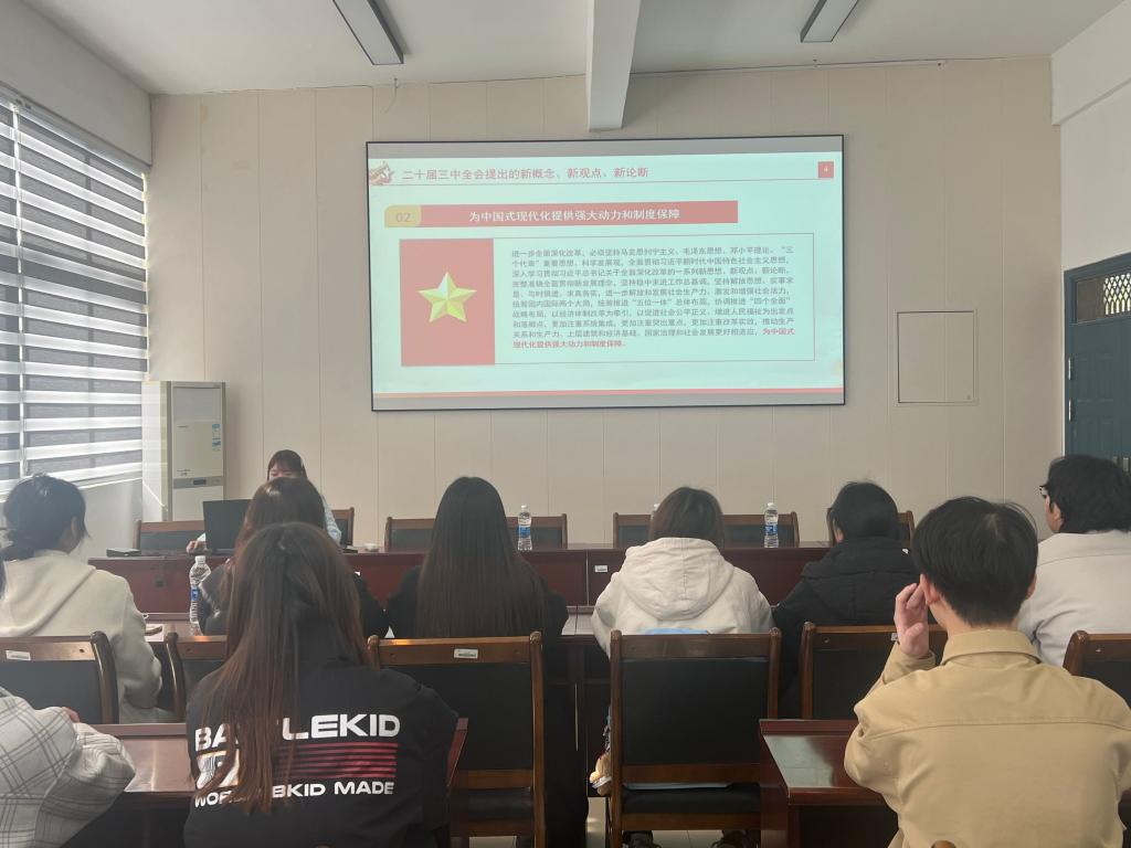 1月3日,信息工程系学生第一党支部书记郑燕丽以《党的二十届三中全会提出的新概念、新观点、新论断》为题,为信息工程系学生第一党支部全体学生党员讲授党的二十届三中全会学习教育专题党课。