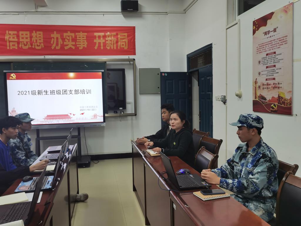 为了把团员工作做好,把团员教育好,自觉履行团支部职能,10月22日晚,信息工程系团总支在实训三408召开了“2021级新生班级团支部培训”大会,全体21级团支书参加了此次会议。