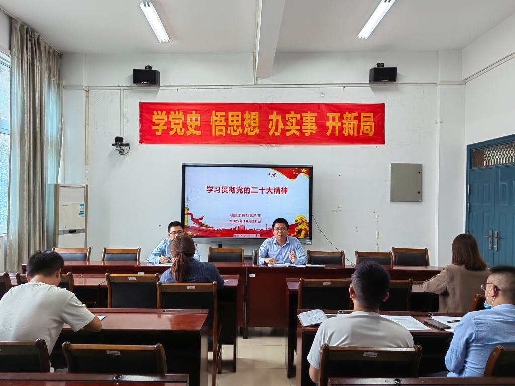 2022年10月27日下午,信息工程系党总支召开理论学习中心组学习(扩大)会议,专题学习贯彻党的二十大精神,系党政领导班子、各支部书记参加了会议,会议由信息工程系党总支书记罗志斌主持。