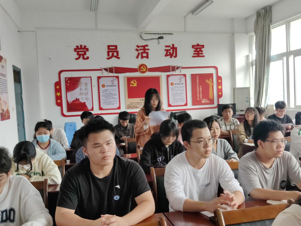 为深入学习宣传贯彻党的二十大精神,信息工程系学生第三党支部于11月18日在实训三408会议室召开学习宣传贯彻党的二十大精神专题党课,会议由党支部书记陈雅佳主持。