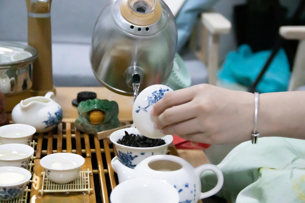 紧随其后的是“悬壶高冲”,也就是冲茶。这一步骤要求用热水从高处冲入茶壶,使得茶叶在水流的冲击下充分展开,释放出茶叶中的精华。