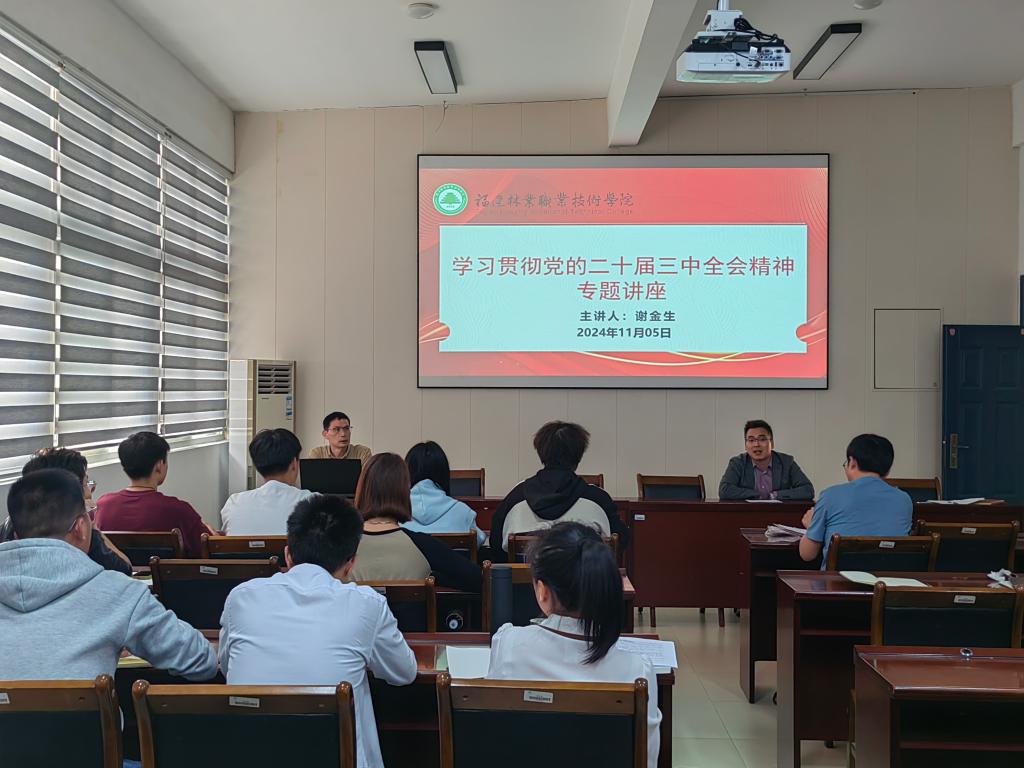 11月5日下午,院党委委员、副院长谢金生在信工楼会议室为信息工程系教师党员、群众、党外代表人士及学生代表作学习贯彻党的二十届三中全会精神专题讲座。