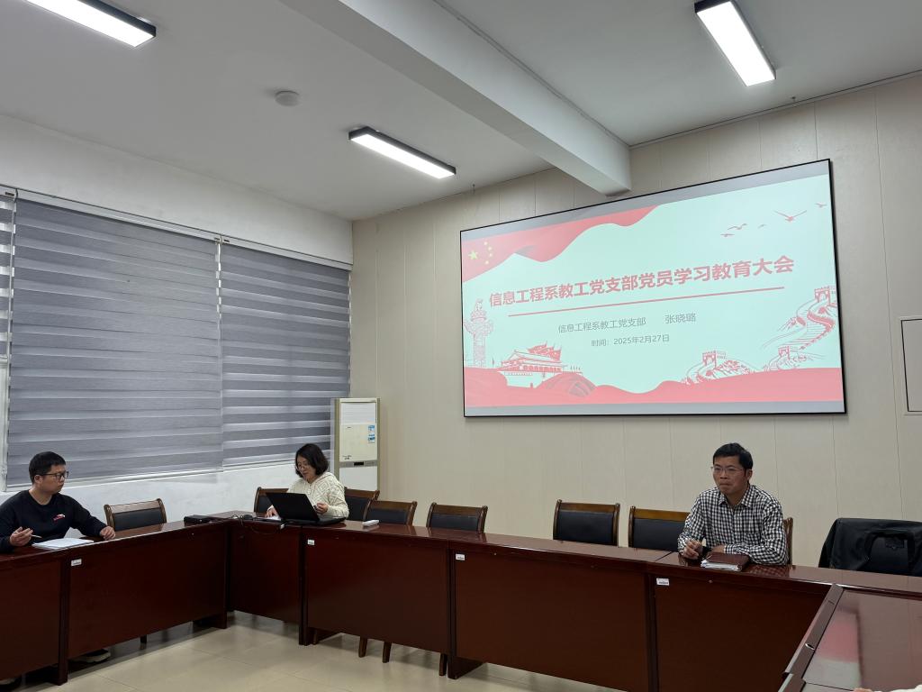 2025年2月27日下午,在信工楼408会议室,信工系教工党支部召开了党员大会,本次大会主要围绕2月份党员学习教育展开。会议由教工支部书记张晓璐老师主持,教工支部全体教工党员参与。