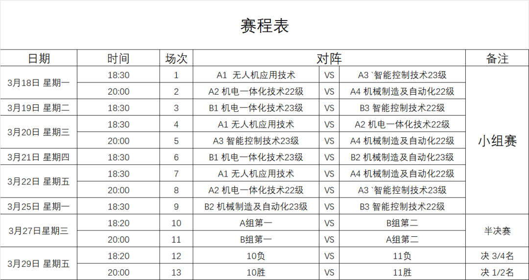 本次赛事预告