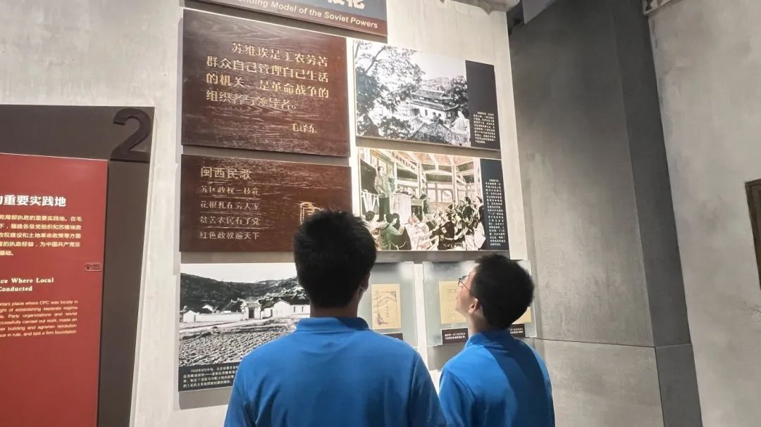 第六站,同学们走进气势恢宏的福建省革命历史纪念馆。踏入展馆,泛黄的历史文物、珍贵的老照片与多媒体展陈交相辉映,宛如打开一部厚重的革命史诗。从五四运动中福建青年振臂高呼的影像,到中央苏区时期闽西儿女踊跃支前的场景复原;从红军游击队在武夷山区浴血奋战的作战地图,到解放战争时期地下党员传递情报的密写信件,一件件展品无声诉说着八闽大地的红色记忆。