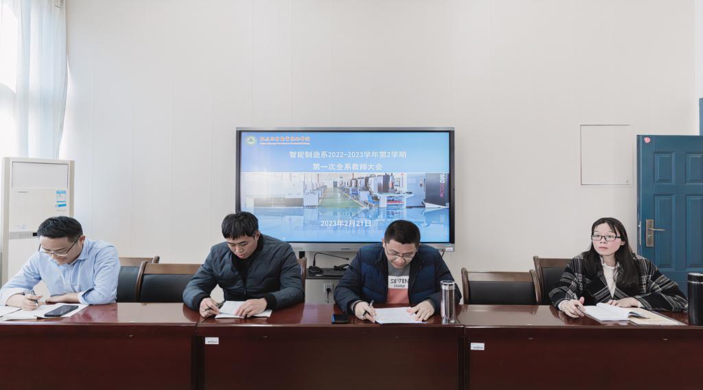为营造深学争优、敢为争先、实干争效的良好氛围,扎实推进新学期系部各项工作开好局起好步。2023年2月21日下午,智能制造系召开2022-2023学年第二学期第一次全体教职工大会。系部党政领导班子、系部全体教职工参加会议,会议由智能制造系党总支书记、主任罗志斌主持。